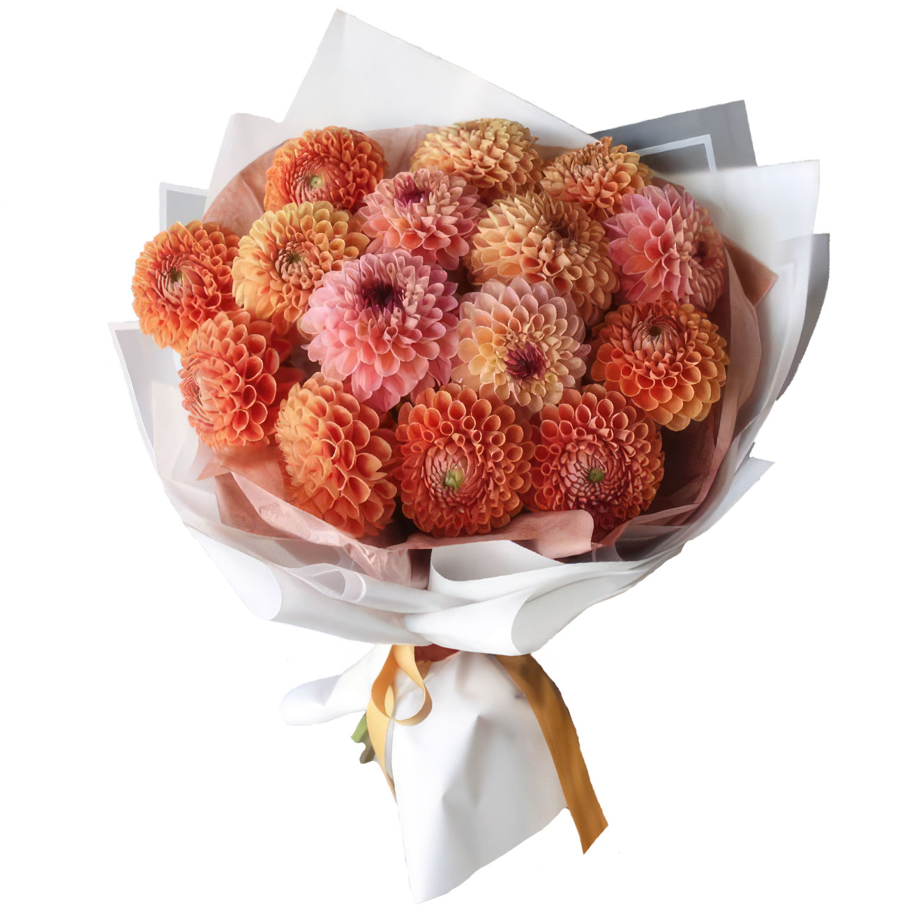 Георгина оранжевая. Упаковка (лента, пленка, крафт, сетка, пленка матовая)