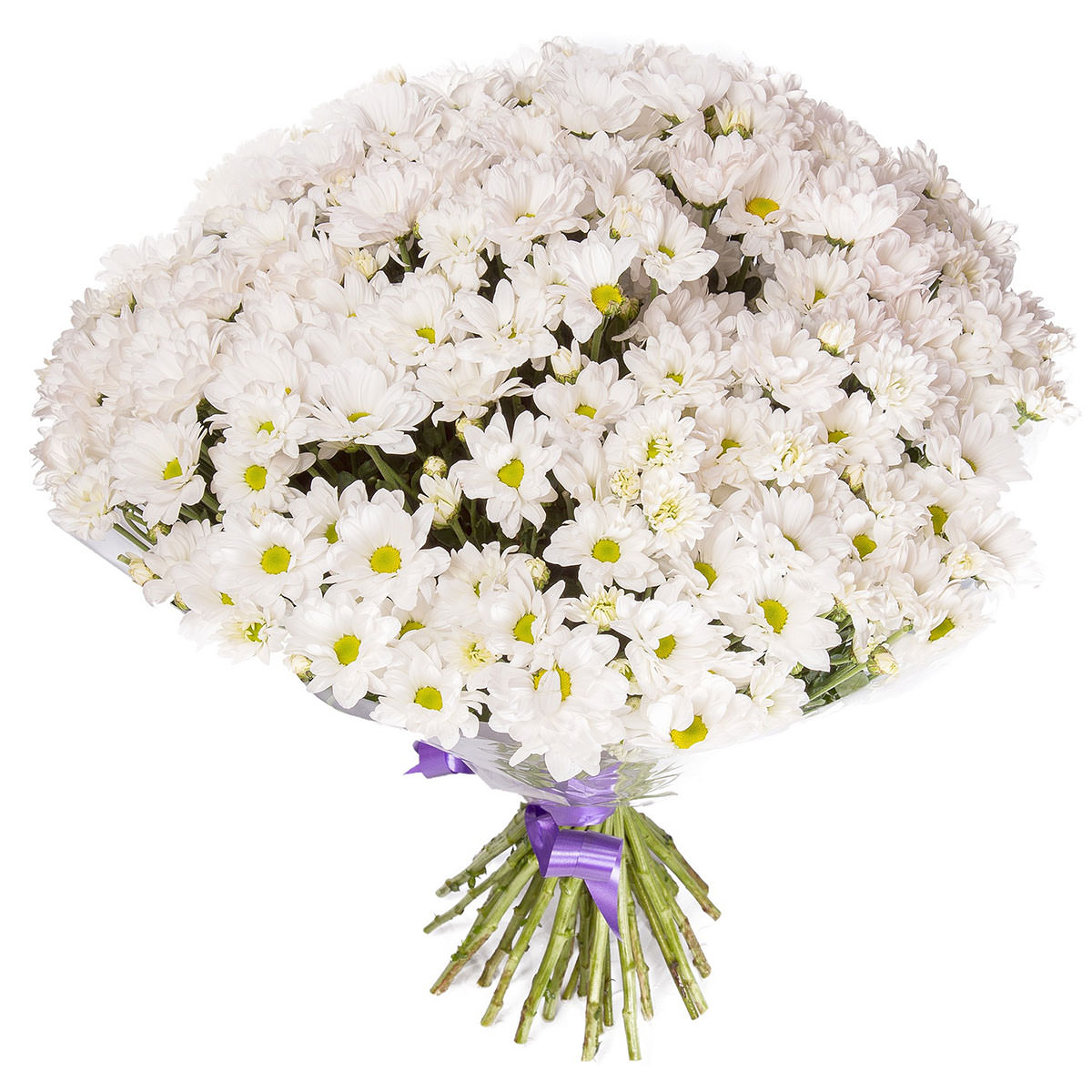Хризантема кустовая белая. Упаковка (лента, пленка, крафт, сетка, пленка матовая)