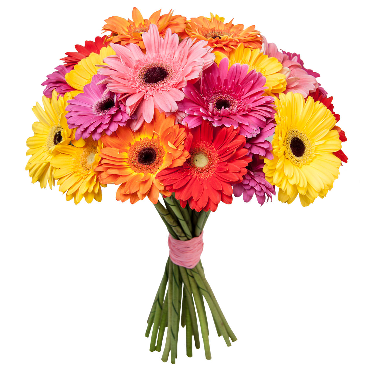 Герберы желтые, розовые, фиолетовые, красные, оранжевые.
