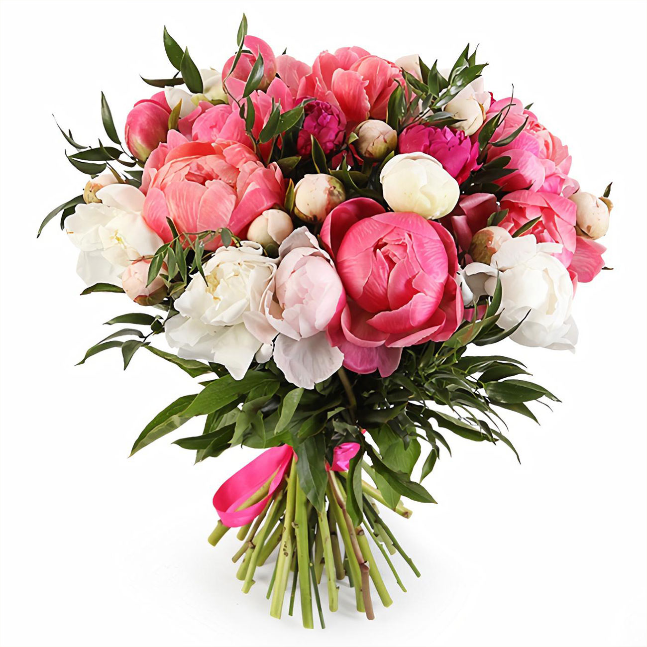 Пионы белые, розовые, красные.
