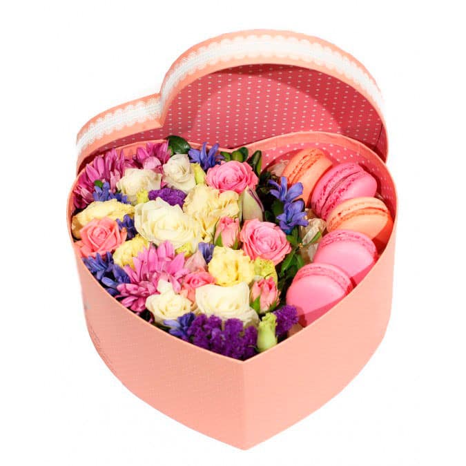 Цветы в коробке «С печеньем» с доставкой по г Красновишерск: вы можете заказать букет в цветочном салоне «Флормания» по цене от 3190 руб.