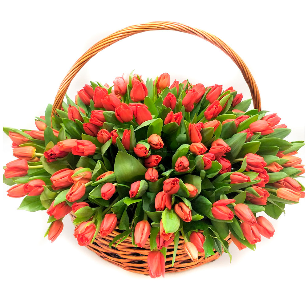 Цветы в корзинке «Красные тюльпаны» с доставкой по г Красновишерск: вы можете купить букет в салоне цветов «Флормания» по цене от 3490 руб.