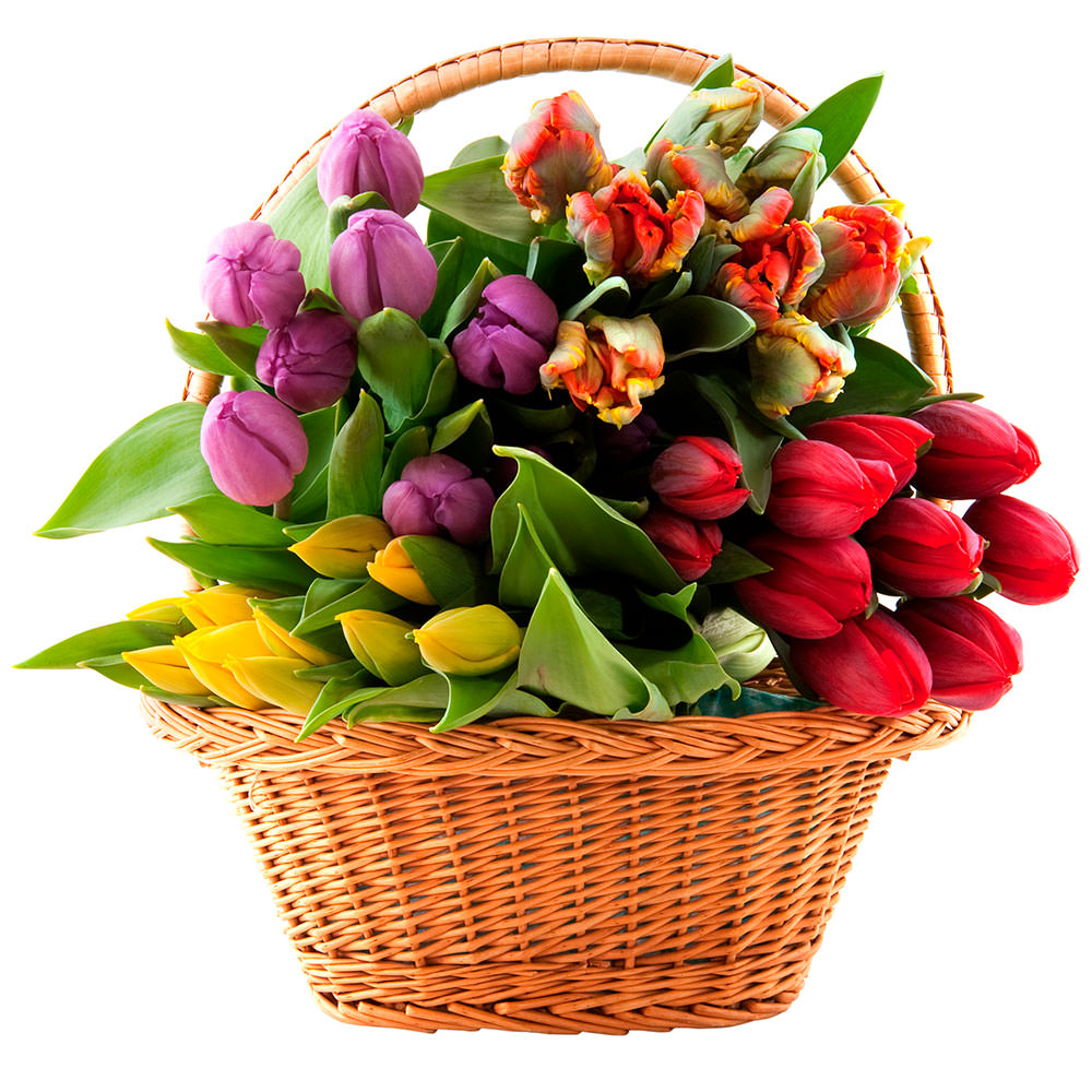 Цветы в корзинке «Микс тюльпанов» с доставкой по г Красновишерск: вы можете заказать букет в салоне цветов «Флормания» по цене от 3490 руб.