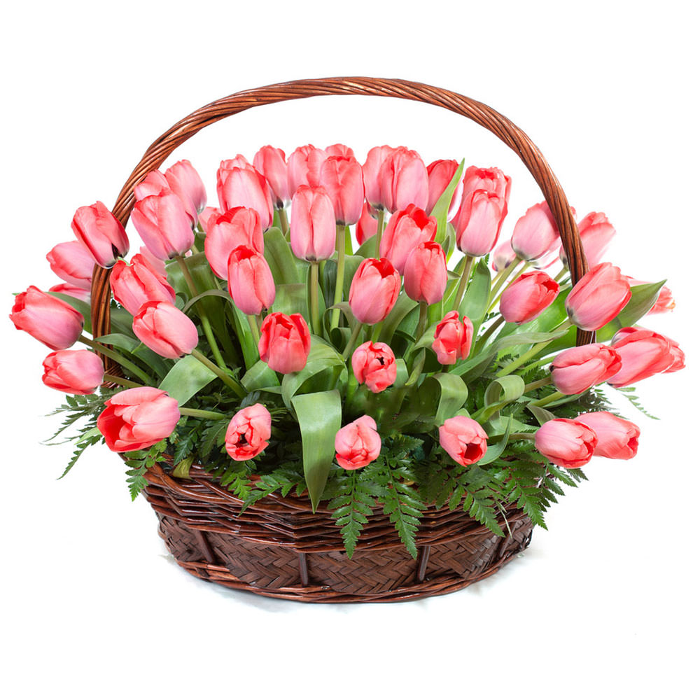 Цветы в корзинке «Розовые тюльпаны» с доставкой по г Красновишерск: вы можете заказать букет в салоне цветов «Флормания» по цене от 3490 руб.