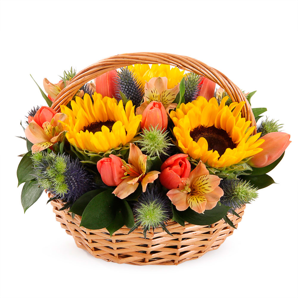 Цветы в корзинке «Солнечный день» с доставкой по г Красновишерск: вы можете заказать букет в гипермаркете цветов «Флормания» по цене от 3490 руб.